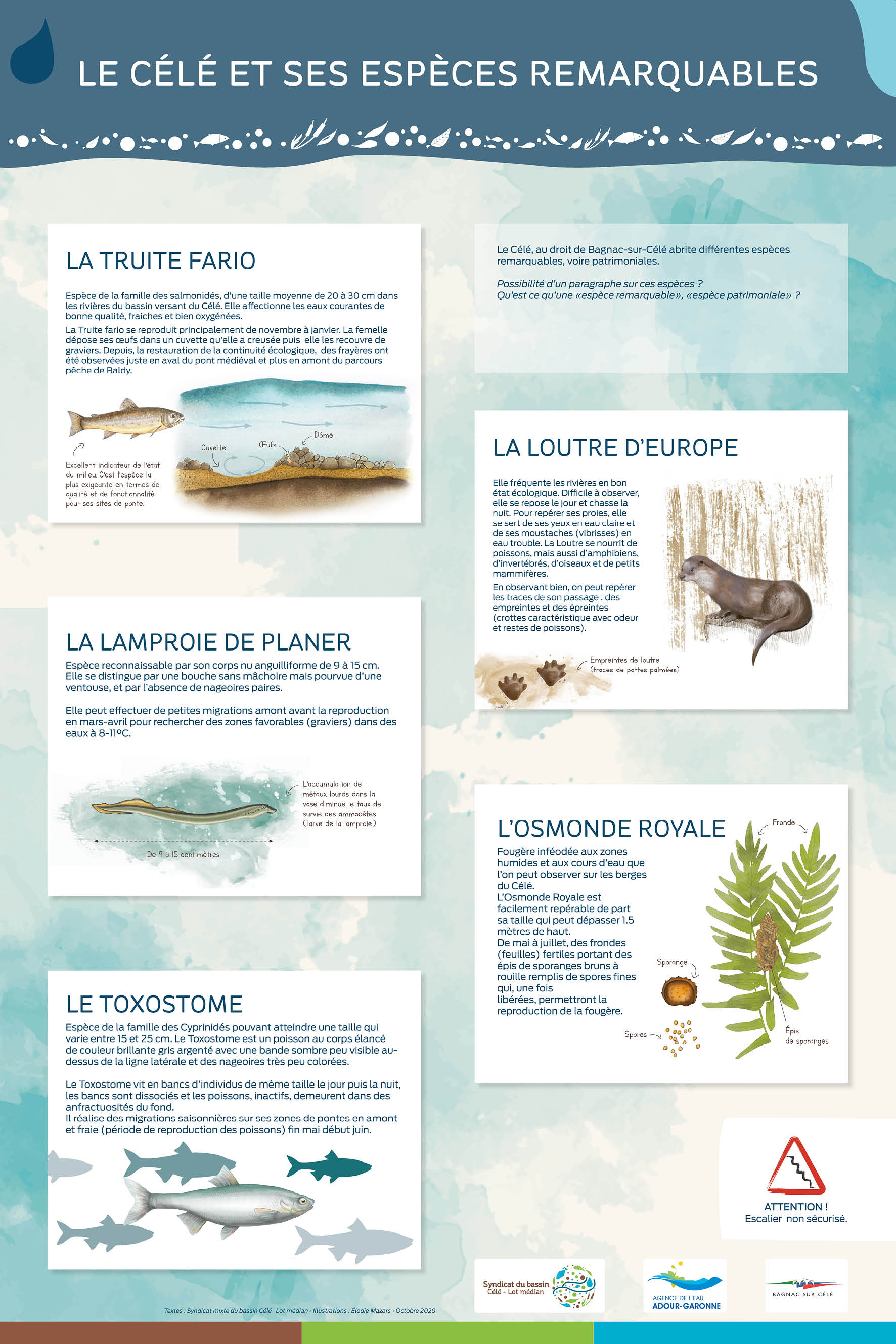 Créations d’illustrations et de panneaux pédagogiques pour la commune de Bagnac-sur-Célé. Ces supports permettent aux usagers de connaître et de décrypter le milieux naturel qu’ils traversent en donnant des clés scientifiques et historiques pour comprendre la vie du lieu.
